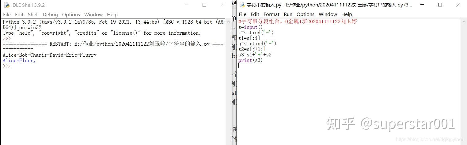 6、字符串分段组合。 2-6.py 。输入的一个字符串s,以字符减号(-)分割s,将其中首尾两段用加号(+)组合后输出。