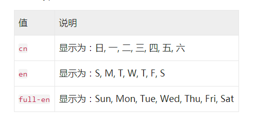 > 3. 显示周标题,周标题默认为 cn 类型,即中文简写;