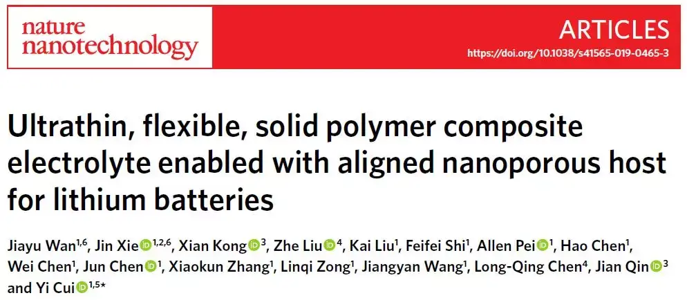 大牛崔屹Nature Nanotechnology最新突破:超薄柔性固态聚合物电解质