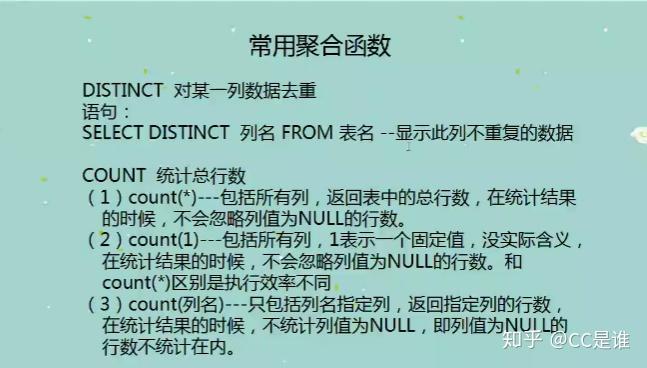 (3)length(‘字符串’) 返回字符串包含字符个数,跟在select后用;