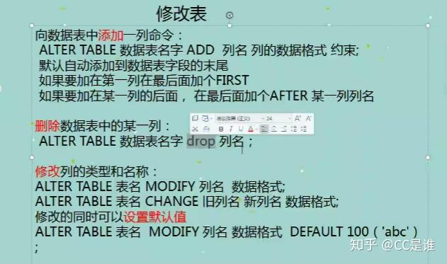 Alter table 表名 change 旧列名 新列名 数据格式 约束条件;