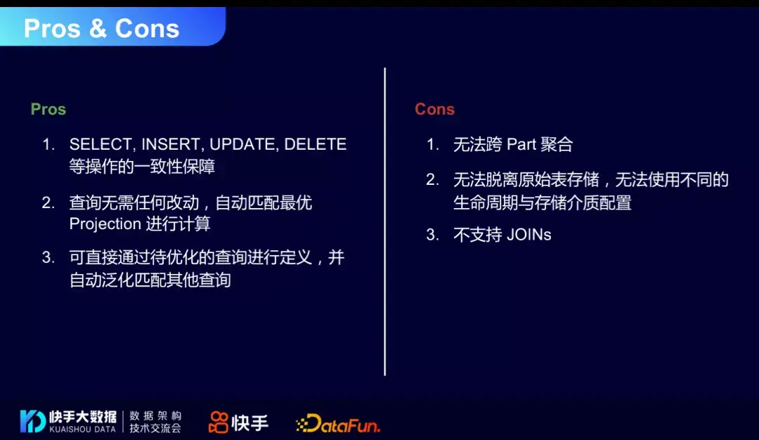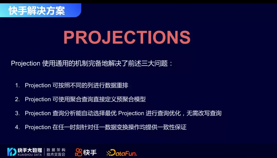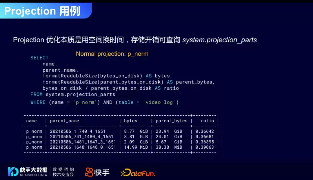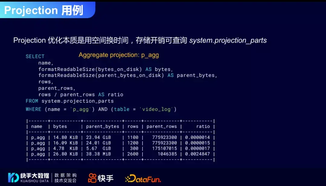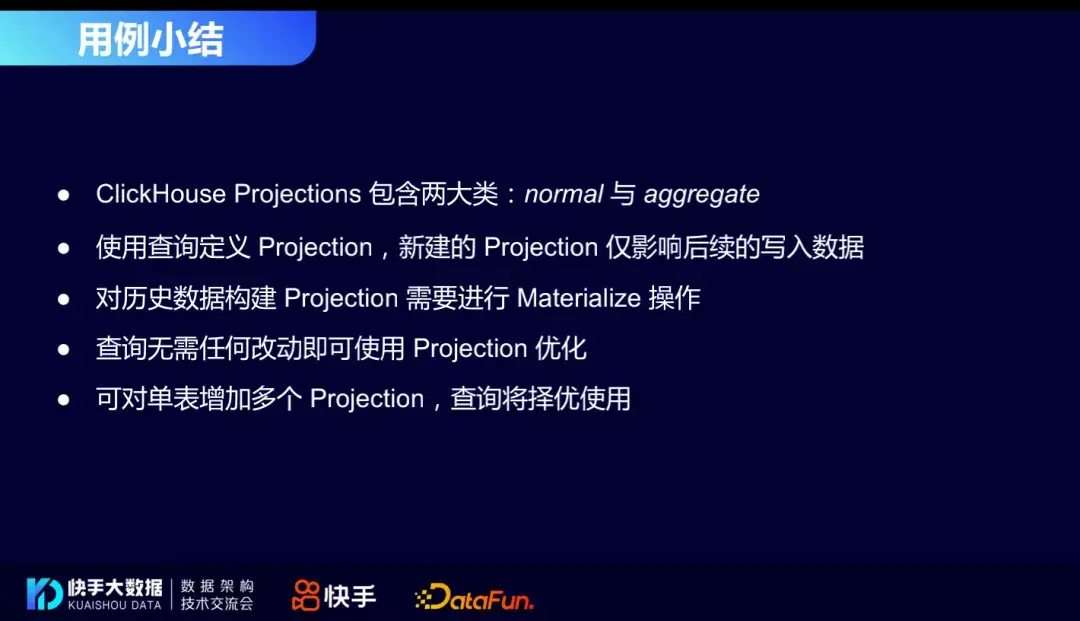 这就是我们把Projection从弱做到强,进一步提升ClickHouse在OLAP领域的应用强度。这个强是有多方面的,还有一方面就是Projection的想象空间比较大。