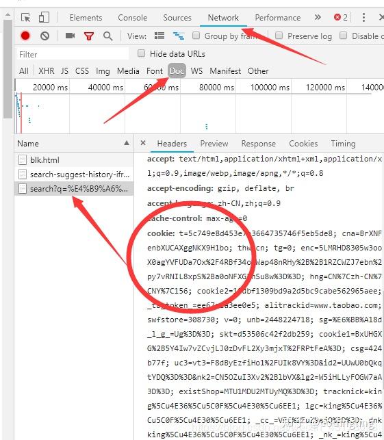 这里我们可以看到我们当前的cookie和user-agent(一般是Mozilla/5.0) (注意:如果没有出现这几个name,点击浏览器刷新就会出现了) 然后在代码中增加我们的cookie和user-agent
