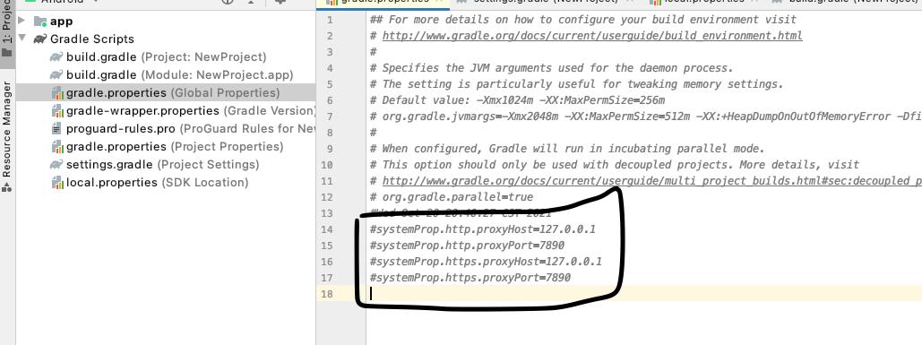 3. 注释掉自动生成的proxyhost和proxyport配置