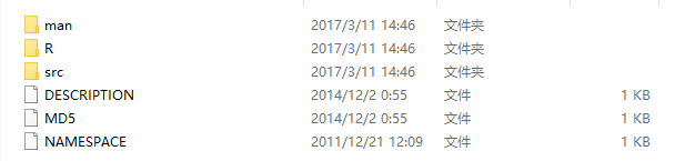 先了解一下文件夹里面的内容。其中man/文件里面包含的文件是类似于解释文档之类的,文件中的内容以.Rd为后缀,这个文件夹是用来编译的时候转为pdf或者http所示;在R/文件夹中,存储的是以.r为结尾R文件;src文件夹中存储的是其他语言的代码,通常为C或者C++,这个的意义所在是因为用C语言或者C++所运行的代码速度比R快很多,因此可以通过这个代码来获取更好的效率。