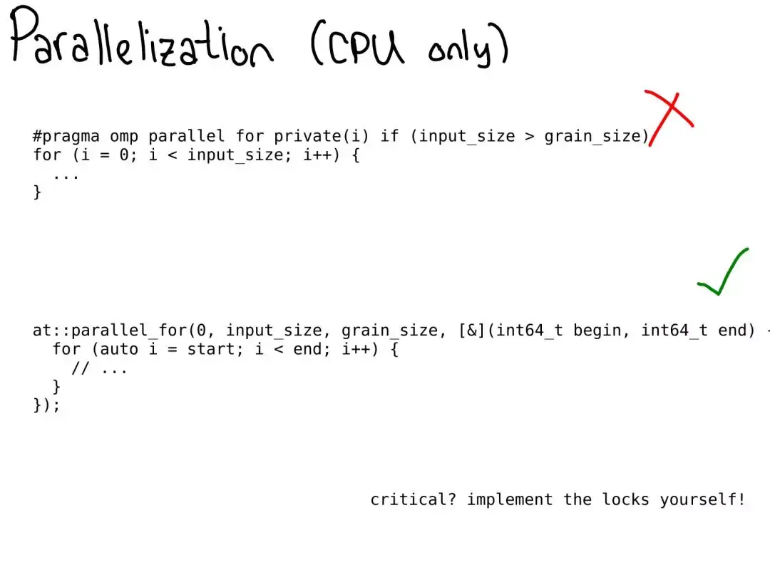 在 CPU 上,你通常需要并行化你的代码。过去,这通常是通过直接在你的代码中添加 OpenMP pragma 来实现。