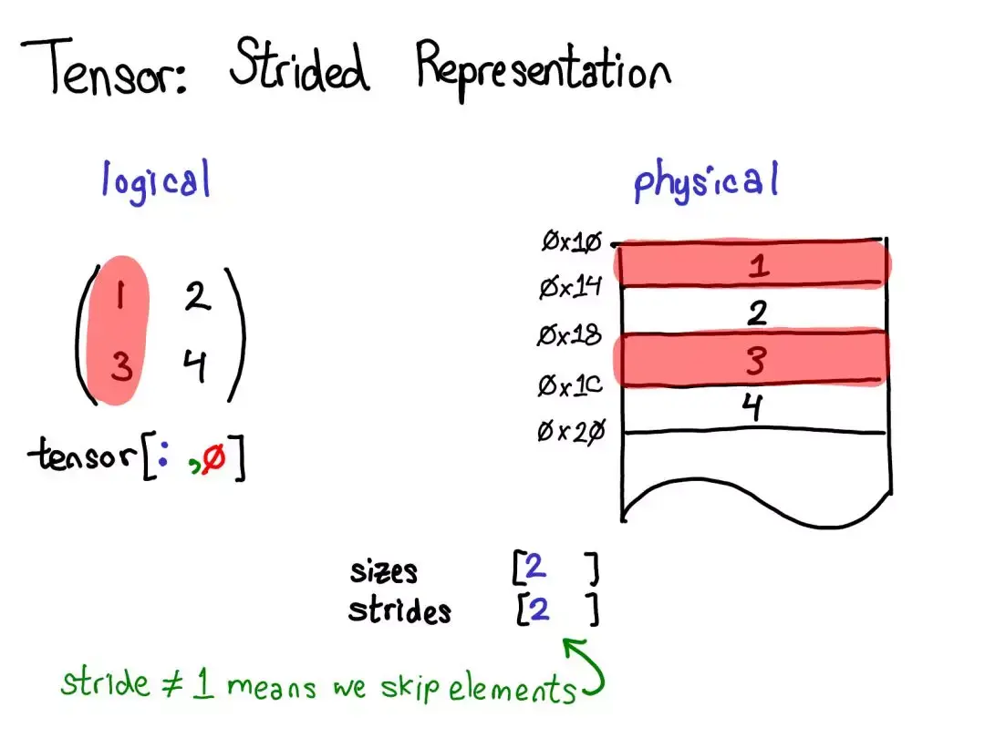 步幅表示实际上可以让你表示所有类型的张量域段;如果你想了解各种不同的可能做法,请参阅 https:// ezyang.github.io/stride -visualizer/index.html