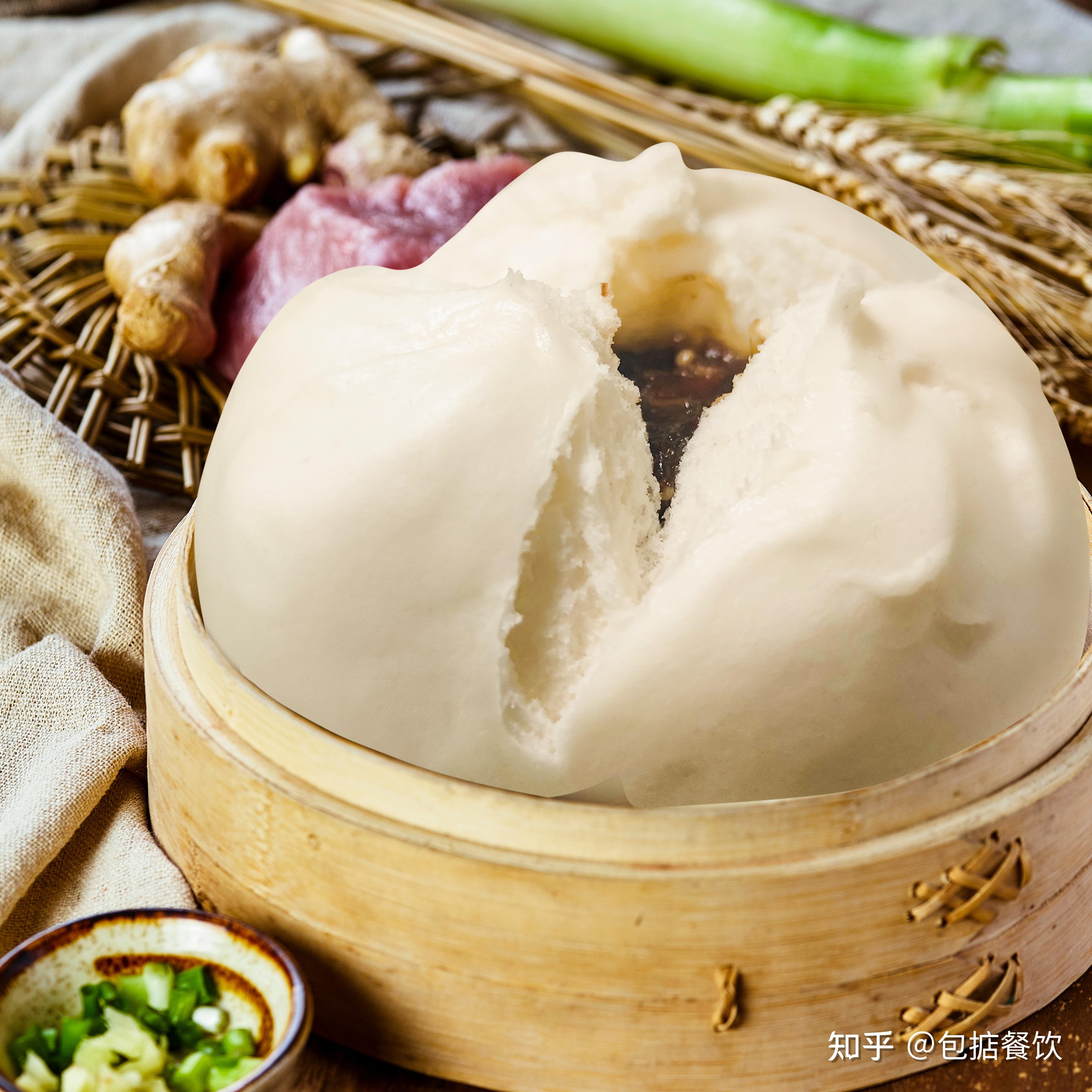 叉烧包,叉烧包的独特之处在于它的馅料,采用新鲜的梅花肉再加上各种调味料腌制足够时间在煮熟,之后再揉面醒发合适包上叉烧馅料捏成好看的皱褶,蒸熟之后会自然蓬松裂开,形状非常好看。