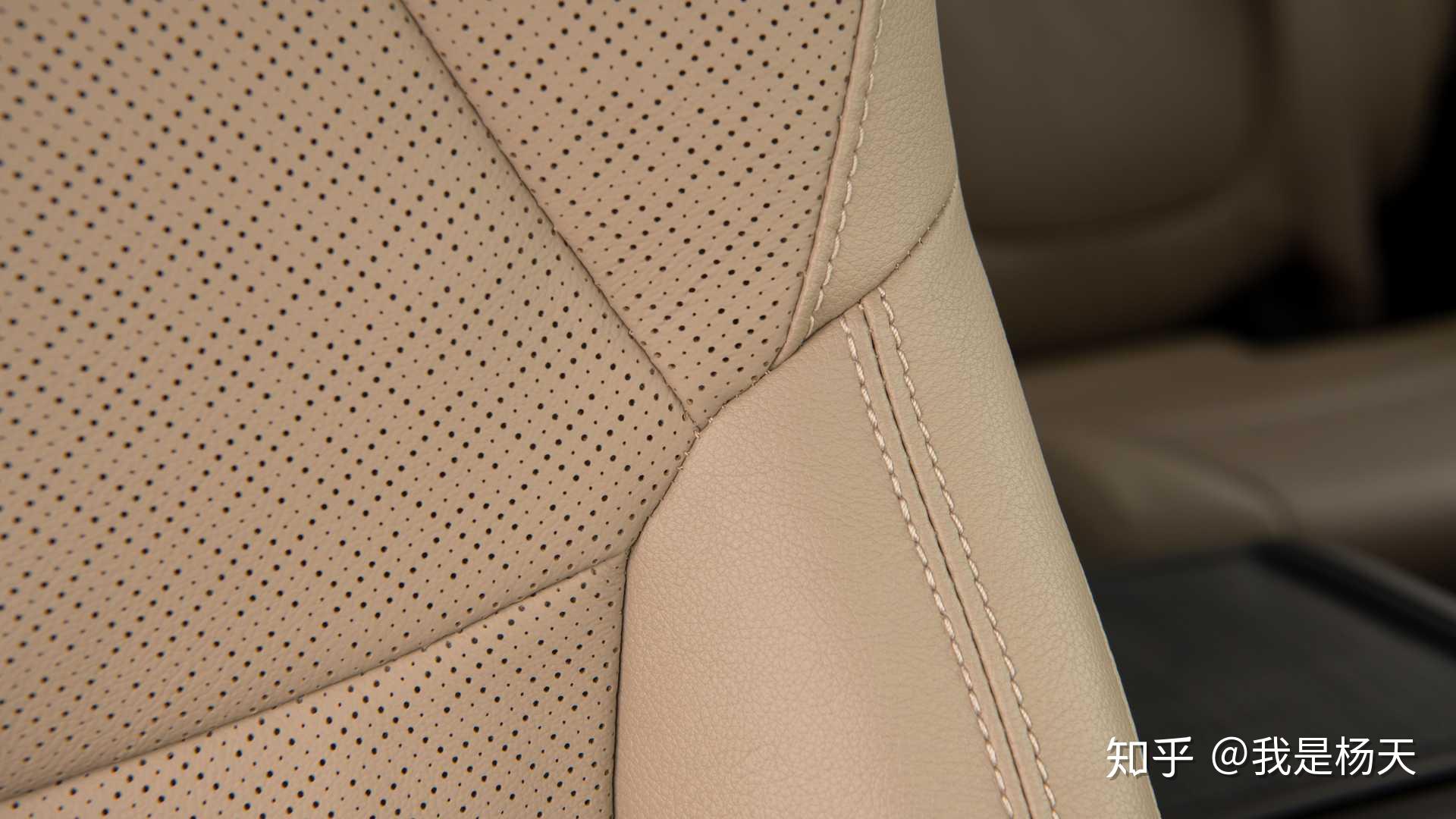 第二排座椅极为舒适,和前排是一样的皮革饰面。靠背可向后大角度调节,支持腿托,很舒服。