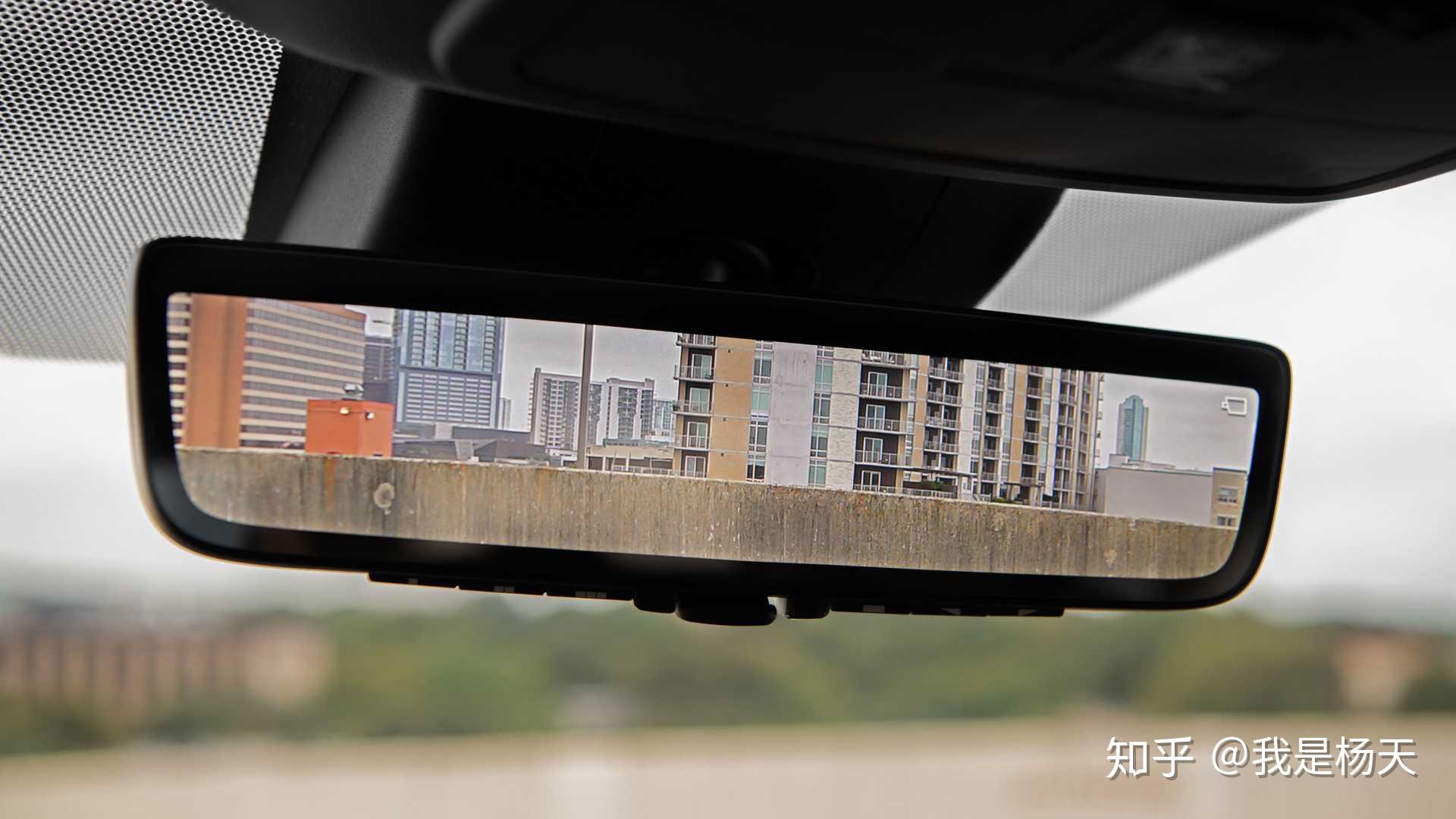 我们这辆试驾车还提供了选装的流媒体后视镜,可以为你提供后方更宽的视野。但它不是很清晰,很容易被雨水遮挡。不过,这比从小小的后车窗看过去还是要好。