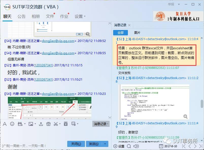 在 SUT学习交流群 (群号: 615356012 ),有位魔都的小伙伴在使用Outlook群发Excel文件,还需要把ExcelSheet首页截图放在正文,至于如何使用VBA代码群发邮件,可以移步 【Excel VBA】- VBA结合Outlook批量发送邮件(一) 和 【Excel VBA】- 使用CDO批量发送邮件(二) 进行学习。该小伙伴遇到的问题是使用断掉调试截图是正常的,但通过运行群发邮件,图片就是空白的,具体的问题截图如下: