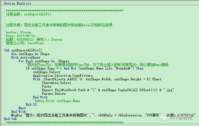 这个功能就更强大了,可以把Excel中的单元格区域导出为图片,不管Excel中本来是否有图片,具体代码太长,就不贴出来了,我们一起来看一下代码执行的效果吧。