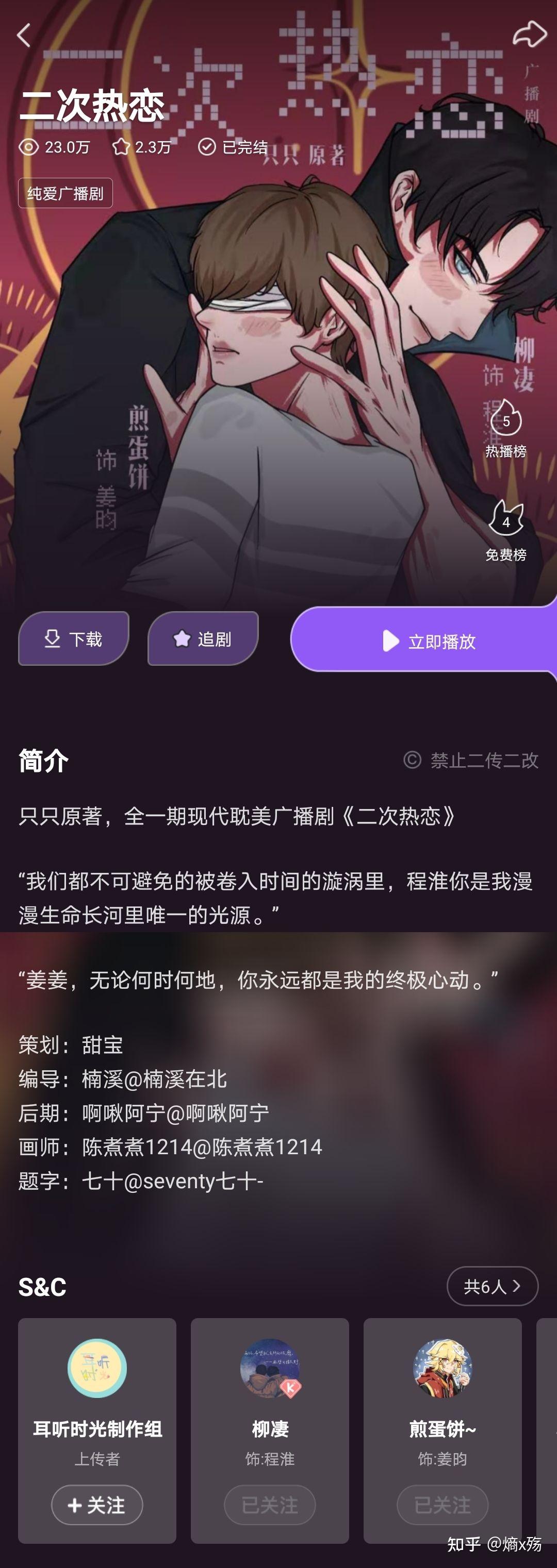 今年4月两个合作全一期广播剧《二次热恋》在漫播上线,很甜很甜,大家可以去收听一下。(srds,饼饼好娇好可爱,不愧是配了一堆温周衍生里面周子舒的人)(67真的大攻音23333)