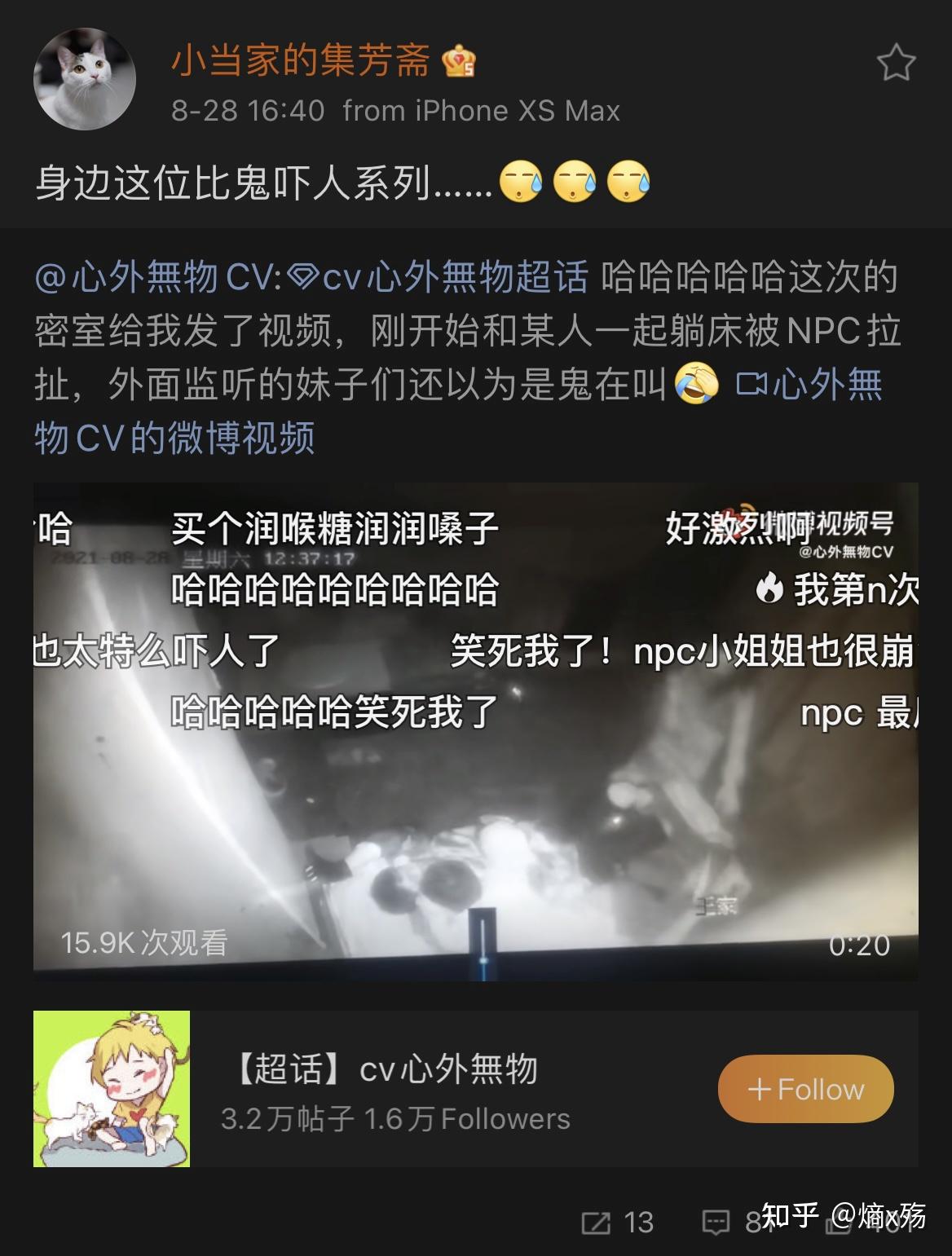 我最近超萌这对,自从发现了心嫂的微博之后,心嫂太太太可爱了吧(直播里面笑声很A,至少比小心A,但是说话声音又很软)听以前的古早直播,小心屡屡因出格言论获家属重拳出击,然后我巨喜欢听心嫂骂一个字: cao(好有毒的癖好233)