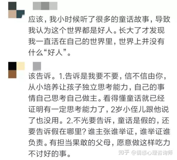 关于这个辩题,我也问了一下我的亲戚朋友,朋友大部分都觉得不该告诉,但是上了年龄的长辈们都认为应该告诉,而我的天然观点当然坚持认为不该告诉,我们一起从心理学的角度分析一下为什么不该告诉呢。▼▼▼ 童话是剩下的唯一可能性