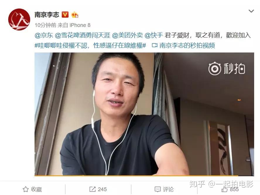 不仅懂得如何依法维权, 李志团队还知道如何触碰到被侵权方的命根子——经济利益。 今天下午5点左右, 李志再发一条短视频艾特了《明日之子2》的赞助方京东、雪花啤酒、美团和快手 ,条理分明地阐述了哇唧唧哇的“三大罪状”:1,无视版权,不尊重法律;2,出事之后只“发了一篇充满漏洞和谎言”的声明,任凭自家艺人“在外面风吹雨打”;3,把责任推给第三方公司。