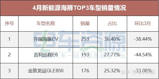 TOP3海狮车型销量环比下降 市占比上升