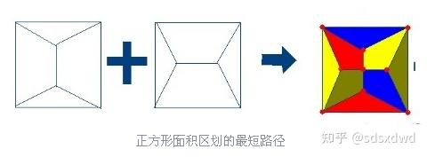 (2)这样的两个面积路径图形组合一起——长方形、四边形面积图区划最短路径: