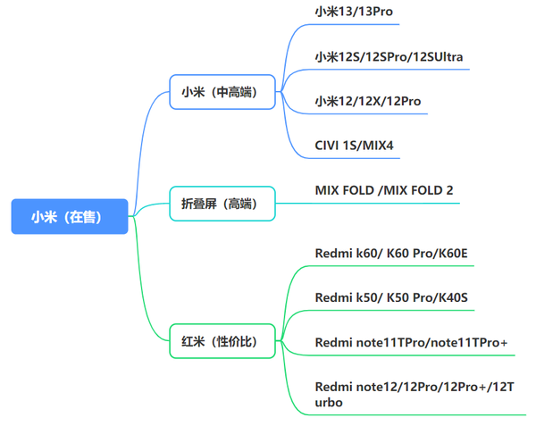 小米手机分为两个系列,现在在售的小米13和小米12系列定价较高,针对的是中高端收入人群。而红米系列类似于早期的小米,主要针对的是年轻人,基础款定价不到两千。