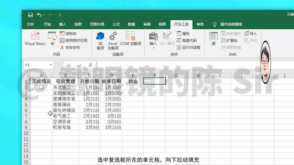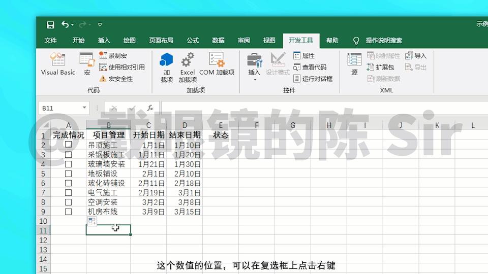 Excel复选框的基本使用方法,使用VAB代码生成复选框管理工作进度