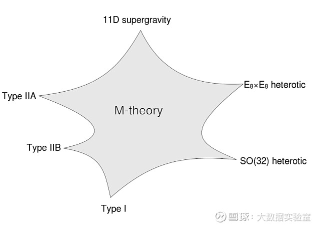 1995 年,威腾在弦理论上的提出了 M 理论,即是说:存在着一个所谓的对偶性的关系网,可以把五种弦理论以及十一维超引力连接在一起。不同的弦理论只不过是同一基本理论的不同表述。