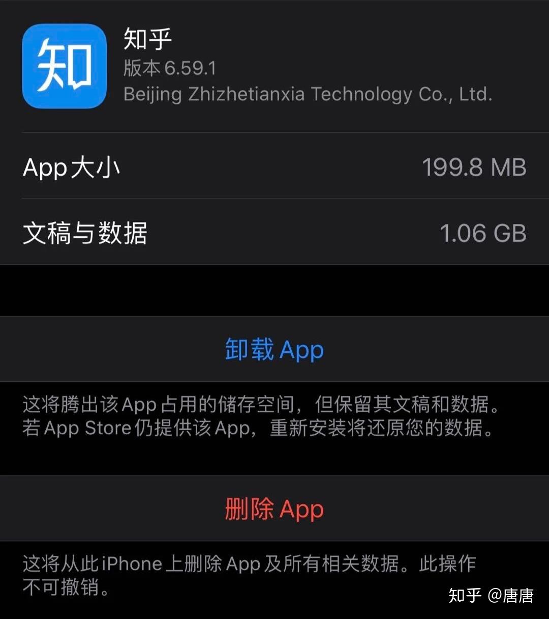首先进入 设置 - 通用 - iPhone储存空间 (iPad则为 iPad储存空间 ),找到你出问题的那个应用,打开后你可以看到这个应用分为两个部分: App大小 和 文稿与数据