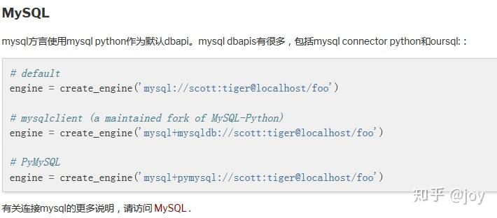 engine= create_engine('mysql+pymysql://用户名:密码@host:port/db_name?charset=utf8')