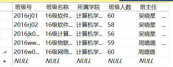 班主任 char(20));
