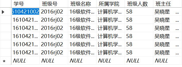 班级号 char(10),