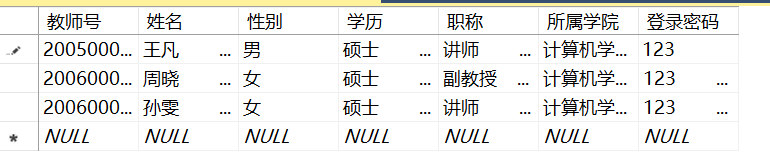教师表