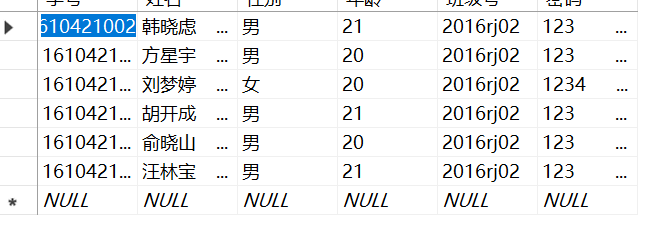 密码 char(20));