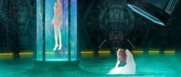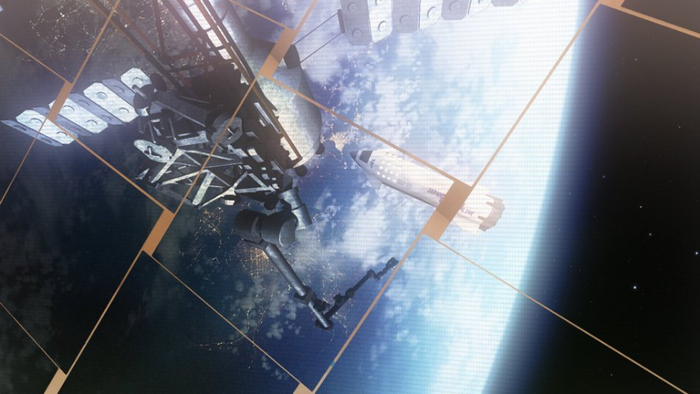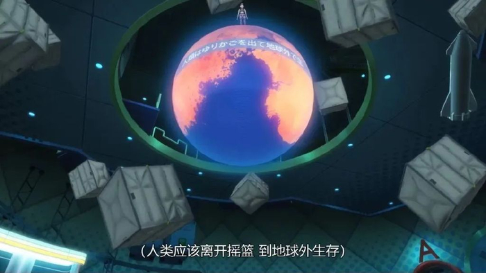 则展现出与之前作品迥异的历史观。在太空出生的少年少女与来自地球的少年少女在空间站相遇,却遭遇一场彗星冲撞事件。在动画中,“地球”被比喻为“摇篮”,而引发这场事故的AI的目的也是为了促使人类走出“摇篮”。