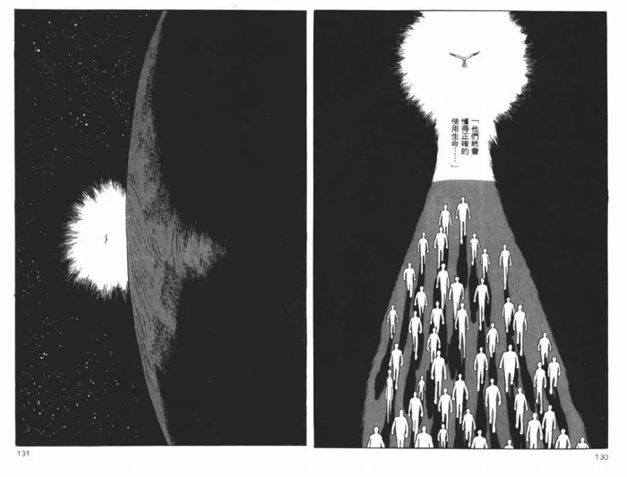 从以上的对照中,我们再次看到了手冢治虫作为启蒙知识分子的人文关怀。在他的笔下,“火鸟”见证了无数次地球文明从无到有、从生物诞生到人类的繁荣的历程,却依旧歌颂生命,相信未来;在望乡篇中,露美与地球的关系正是这一价值观的体现。“奥德赛”,既是文明演化的漫长旅途,也是对个体生命史的探寻。