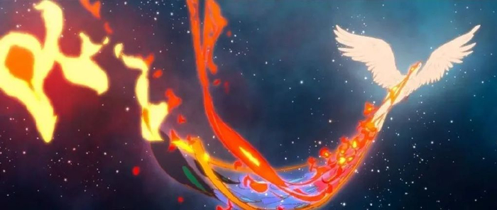 原作提出的伦理、人性、文明等宏大主题要么直接被删去,要么因为改编而失去了原有的深度,“火鸟”所象征的超越性的表达被简化为故事的“幻想元素”。但即便如此,仍有新的观众被故事恢弘的背景所震撼,足可见《火鸟》超越时间的作品魅力。