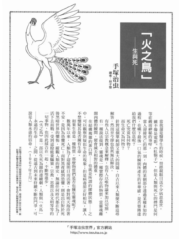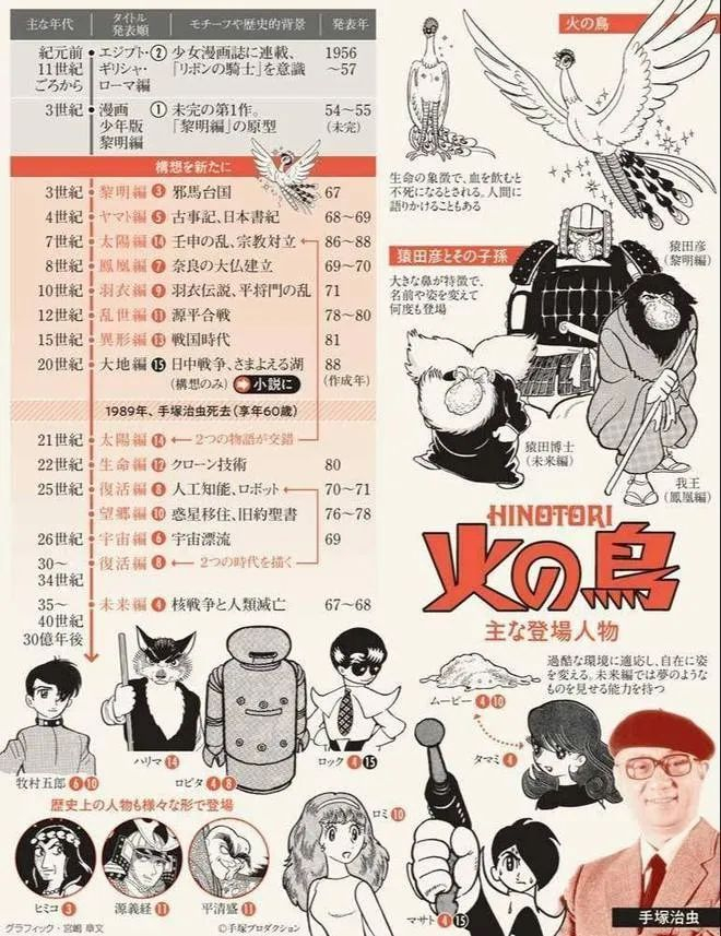 《火鸟》从1954年、即手冢26岁时开始创作,经历三次杂志停刊、多次休载,直到他去世也未能完成,可以说《火鸟》的诞生一波三折,也是评价手冢治虫绕不开的一部作品。