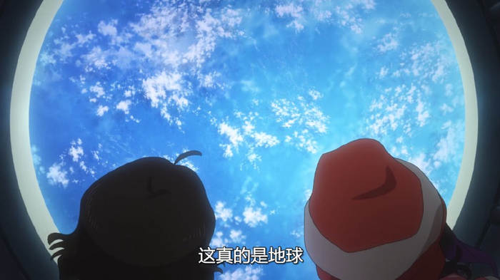 《地球外少年少女》截图:这里的台词是:“地球で本当にあるんだね”,正确翻译是:“真的有地球啊”或“地球真的存在啊”。