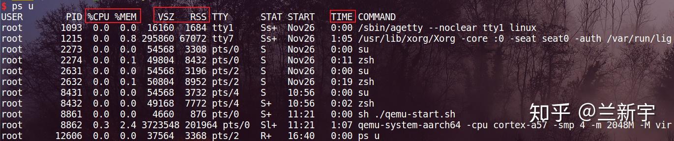 如果只想查看用户进程,则加上参数"u"或"l"。"u"和"l"都可以显示VSZ(即VSS),RSS和执行时间统计,此外"u"还可以显示CPU和memory占用率: