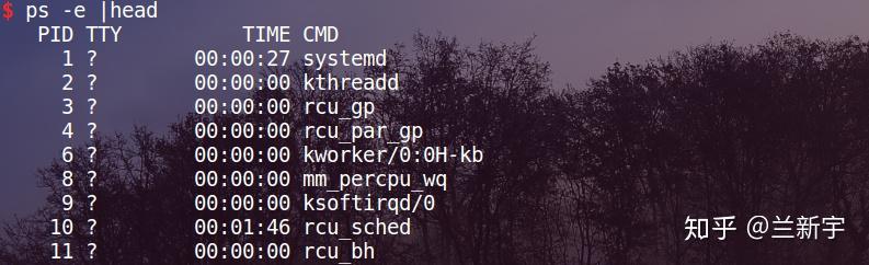 介绍完了进程占用内存的计算依据,接下来就可以结合各个参数,来查看ps命令输出的各种信息了。要显示所有的用户进程和内核线程,加上参数"-e"即可: