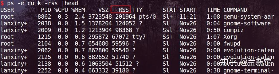 既然"u"和"l"可以显示进程中各个特性的详细信息,那我们肯定希望必要的时候,可以按照其中的某个特性来排序,比如按RSS排序以查看哪个进程消耗的内存最大(虽然并不是那么准确,但还是可以看个大概嘛),这就要用到"k"参数。