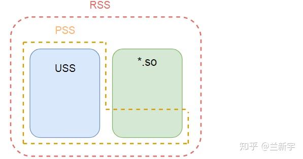 为此就出现了三种不同的计算方法(统计口径),一种是只计算进程自身占用的物理内存,完全不包含共享库所占用内存的 USS (Unique Set Size),一种是把共享库占用的内存直接加到每个进程头上的 RSS (Resident Set Size)。