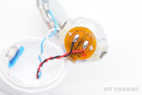 扬声器和电池导线过孔连接到耳机柄内主板上。
