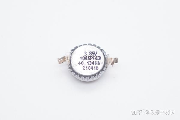 扣式软包电池型号:1045PF4B,容量:0.134Wh,电压:3.85V,生产日期:2021年4月16日。