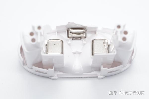 座舱底部设置的三颗方形磁铁,用于吸附充电盒盖和耳机。