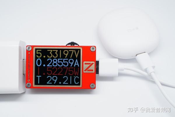 我爱音频网使用 ChargerLAB POWER-Z KT002便携式电源测试仪 对小度智能真无线耳机 S1进行有线充电测试,输入功率约为1.5W。
