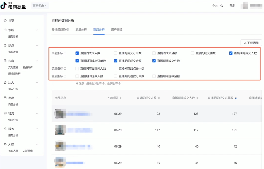 交易指标:筛选销售最好的产品在下场直播中增加库存或类似款;