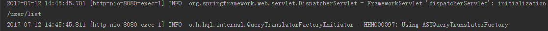 可以看到上面我截图的地方,SpringBoot已经把Druid当做dataSource加载到了项目中,那么我们现在访问用户列表地址: 127.0.0.1:8080/user/list ,如何上面访问的一样的话,再来看下IntelliJ IDEA工具控制台的输出日志,能看到: