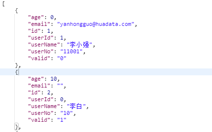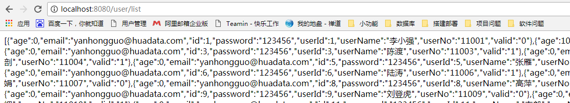经过上述的配置我们基本完成对了SpringBoot整合FastJson的内容,我们接下来尝试运行下项目,访问user/list如下图所示: