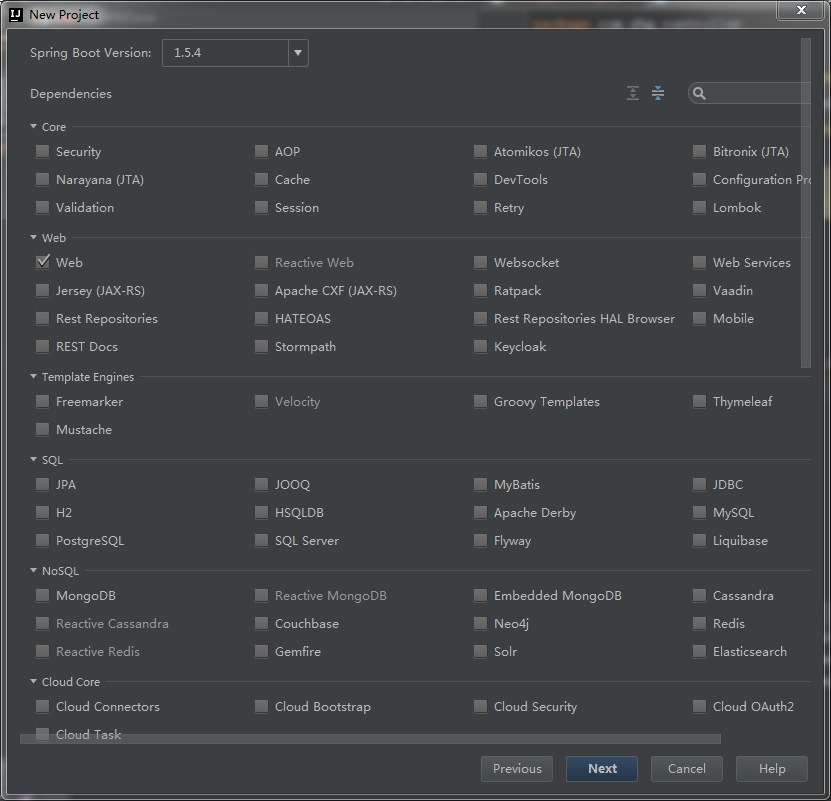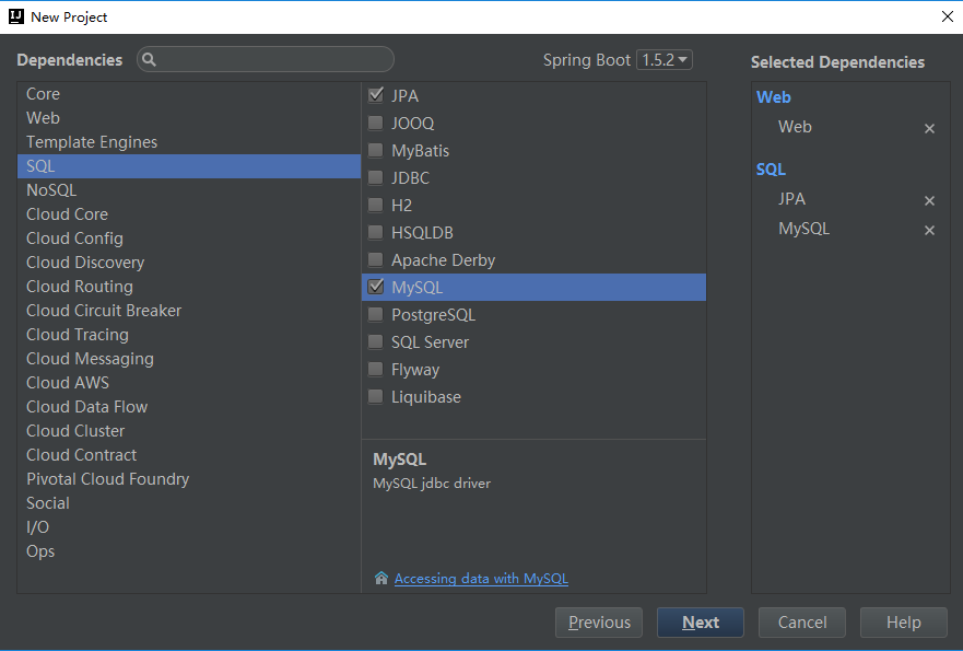如果是新建项目可以在下面页面中勾选web,MySQL,JPA组件: