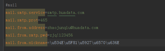 MailContentTypeEnum是 自定义的枚举类型,枚举类型包含了邮件内容的类型,目前我仅仅添加了两种,一种是 html 另外一种则是 text 形式;PropertiesUtil是用于读取*.properties配置文件的工具类,使用JavaMail需要配置SMTP以及用户名、密码等也就是MailEntity内的字段,接着我们在application.properties里添加如下配置: