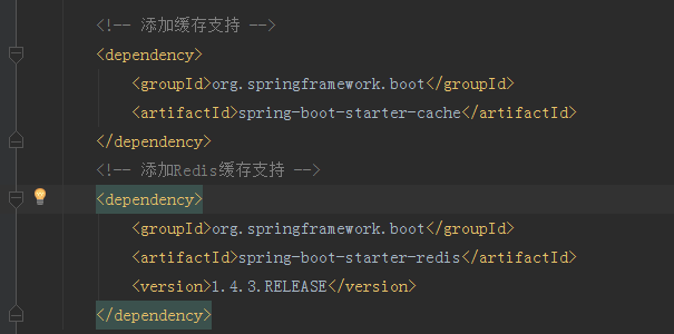 添加缓存的支持需要两个依赖,一个是SpringBoot内部的缓存配置、另外则是我们的redis缓存。依赖添加完成后,需要配置我们本地的redis数据库连接到项目中,我们打开application.properties配置文件添加如下所示的配置内容